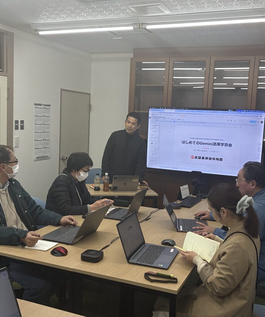北日本非破壊検査では、現場の安全を守る「技術」だけでなく、それらを支える「思考」のアップデートも大切にしています。 先日、新たな試みとして「社長自らが講師を務めるAI活用勉強会」を開催しました。
