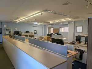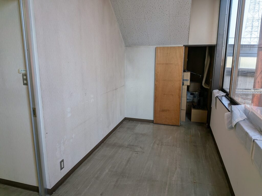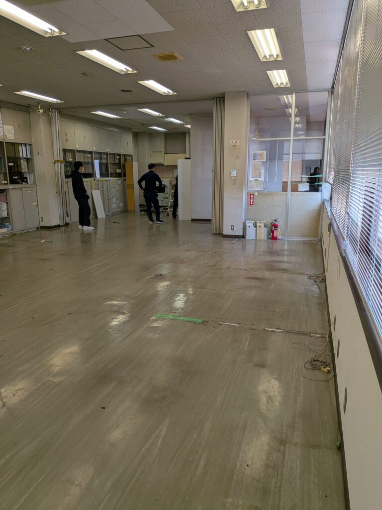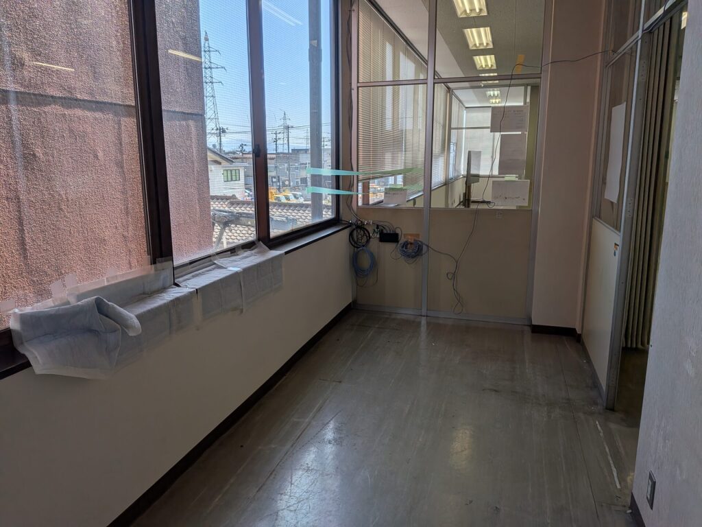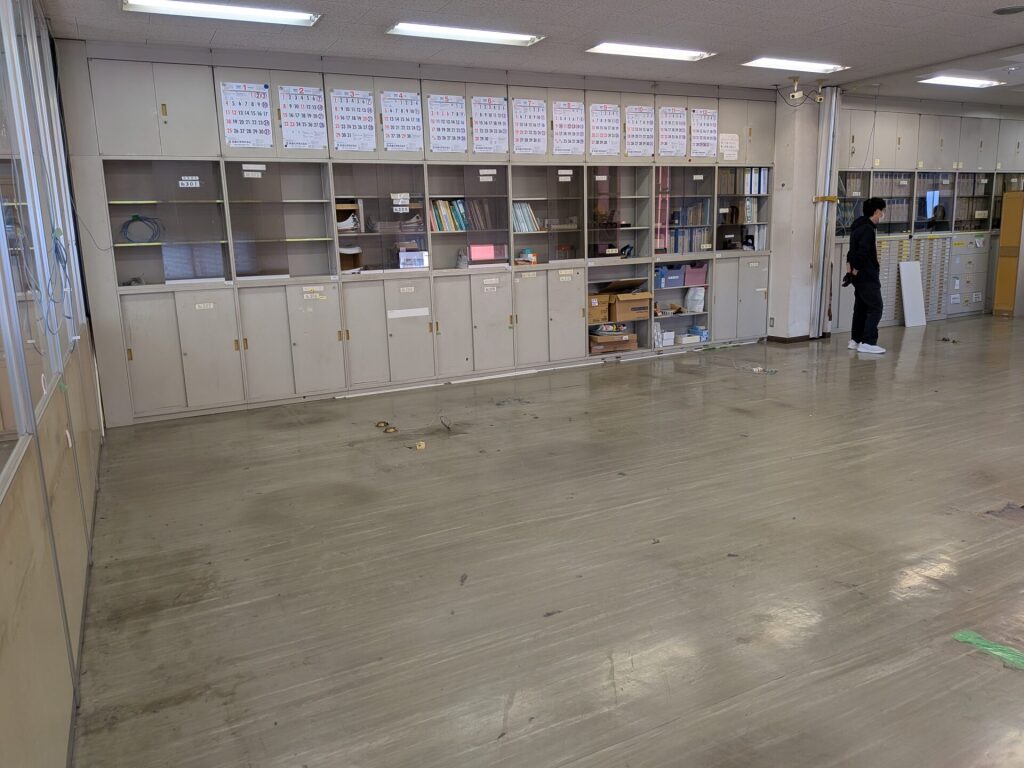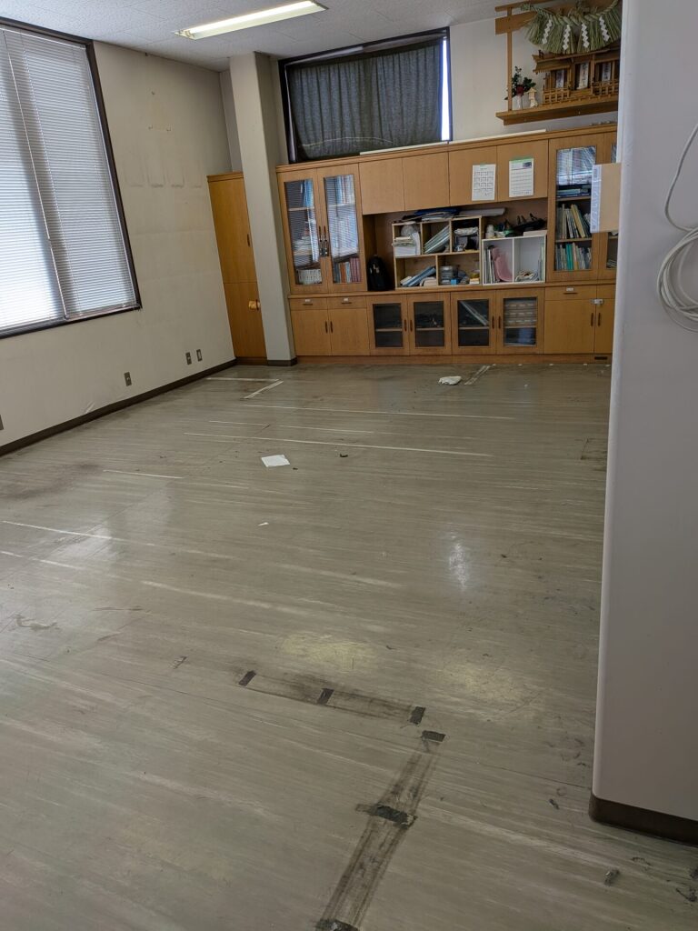 長年慣れ親しんだデスクや椅子を搬出され、現在は広々とした「何もない空間」が広がっています。