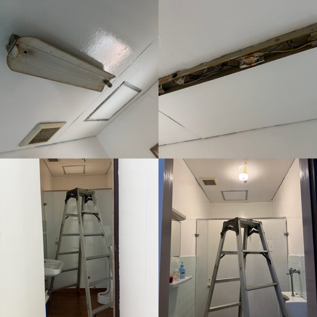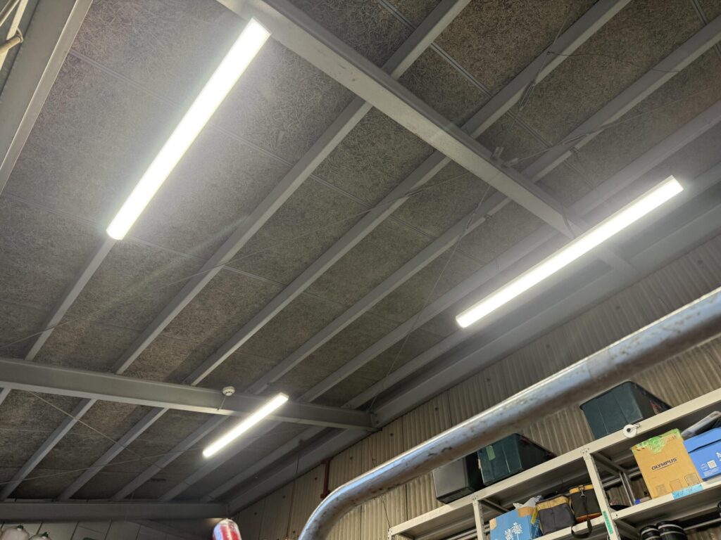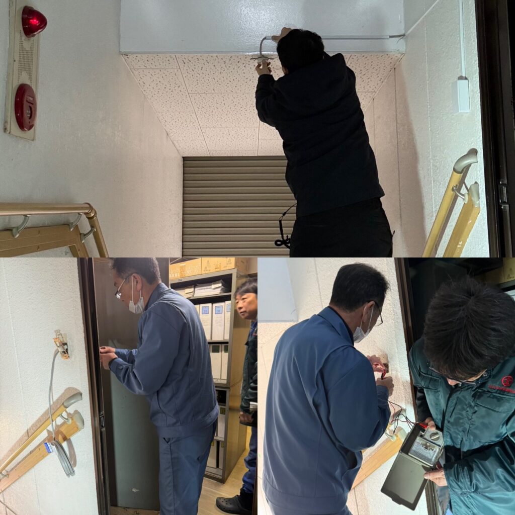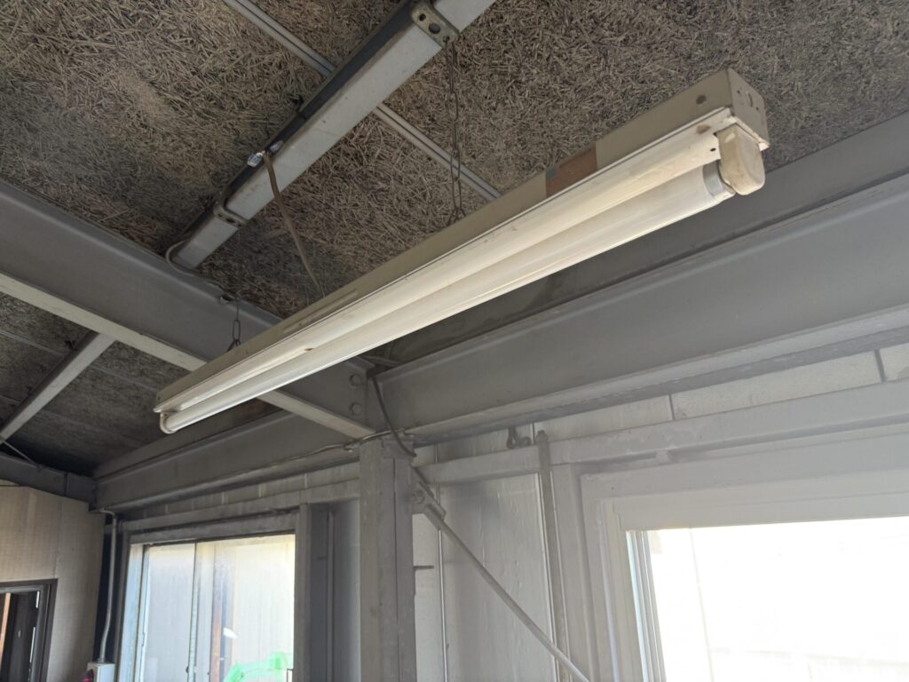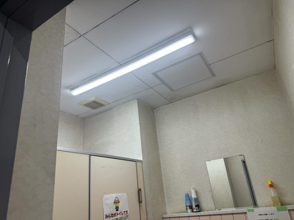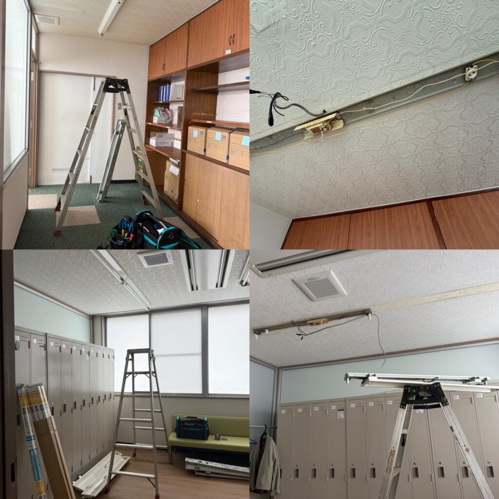 一方で、トイレや通路・階段・工場などのエリアでは、社長(第二種電気工事士資格保持)をはじめ、電気工事士資格を持つ社員が主体となり、気が付いた箇所から順次交換を進めています。