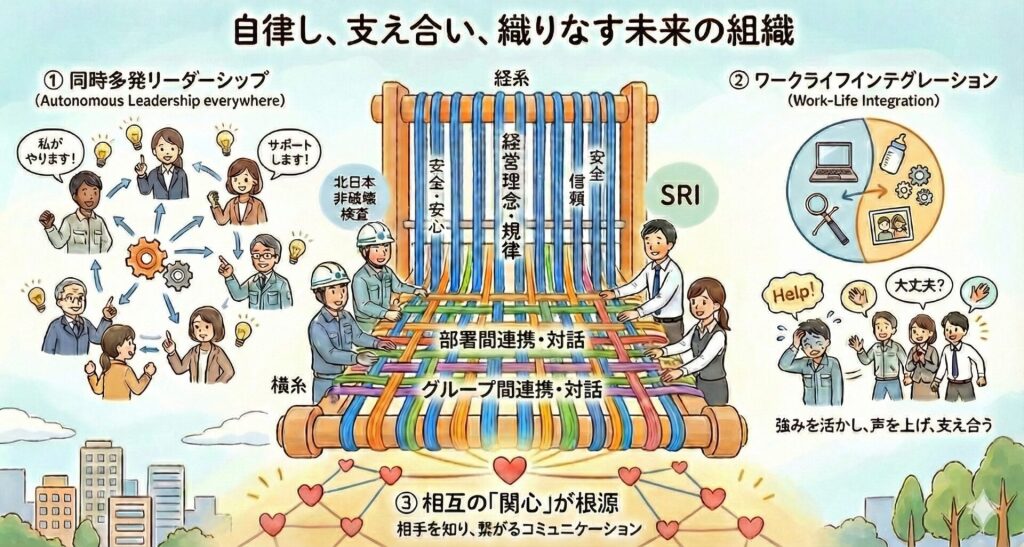 今回のセミナーを通じて、SRIだけでなく、私たち北日本非破壊検査にとっても重要となる「これからの目指すべき組織のあり方」について確信したことがあります。ぜひ皆さんに共有したいと思います。